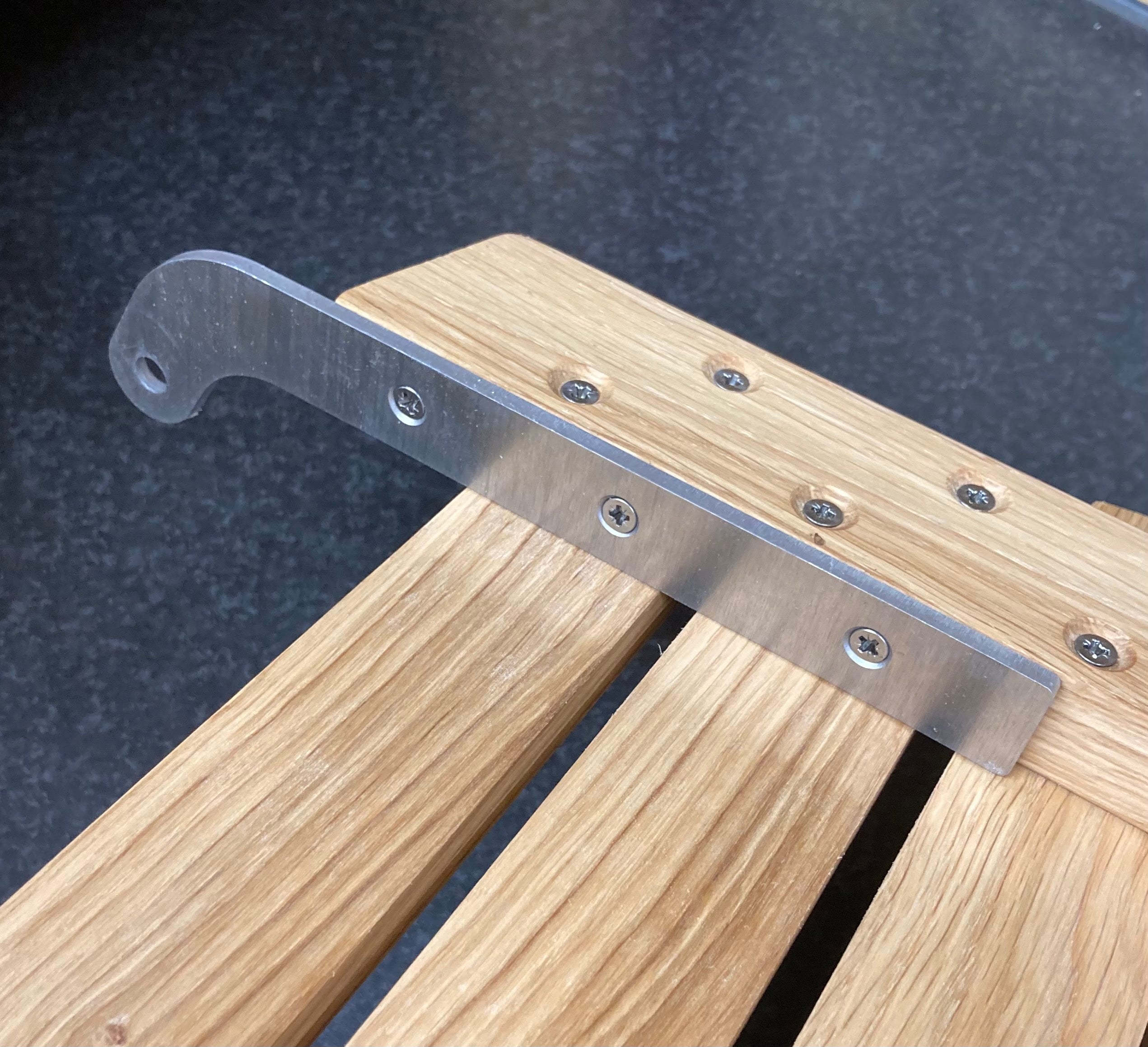 Bitte beachten: Jede Holzlatte wird separat verkauft. Bei der hinteren Rückenlehne, die sich in Ofennähe befindet, sind zwei Metallhalterungen inklusive Schrauben enthalten.