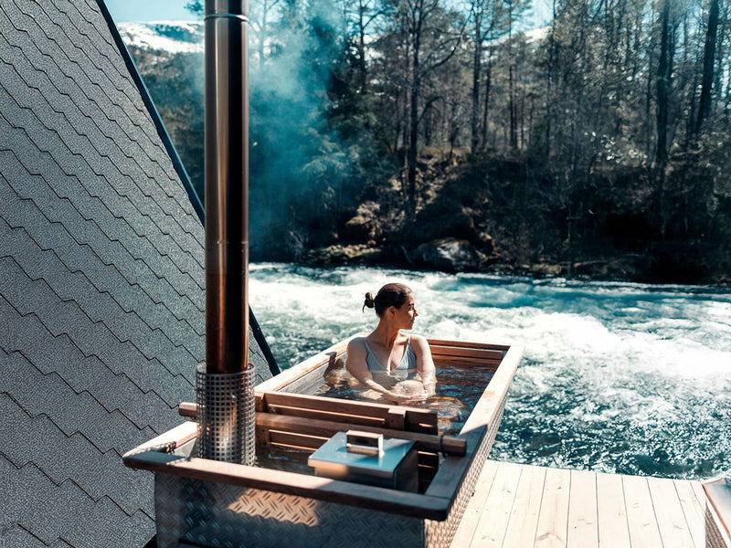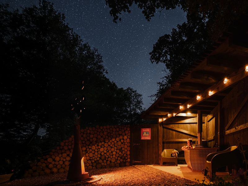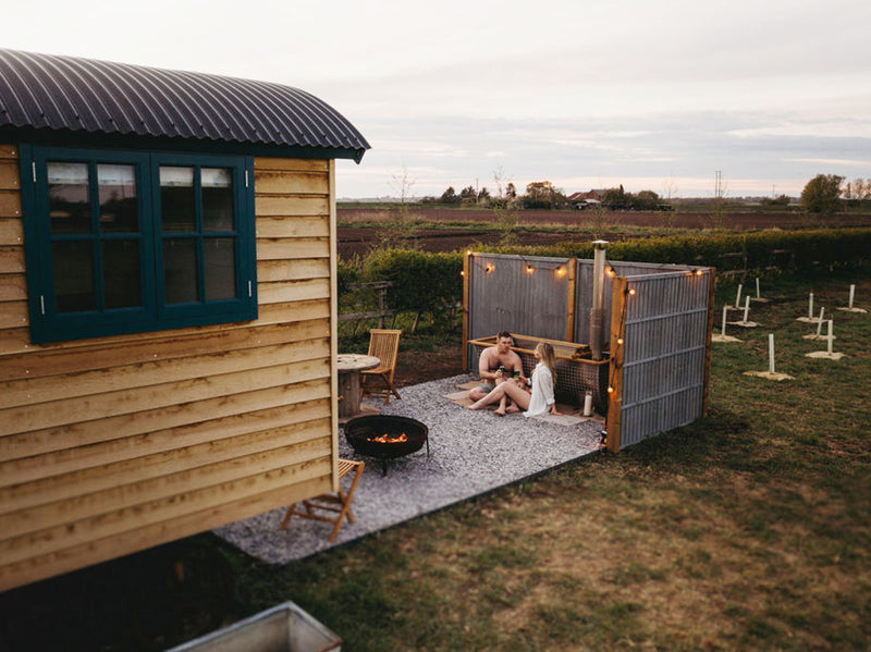 "To be able to lie in a bath under the open sky with the smell and crackle of burning wood immersed in nature is one of life's greatest pleasures. The Bohemen is a perfect solution, with its natural wood seating, eye-catching design and simplicity of use, it sits delicately in our natural environment."— Guest, Outfield Farm Cabins