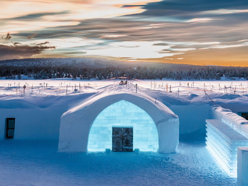 Jukkasjärvi, SverigeThe world's first hotel made of ice and snow.