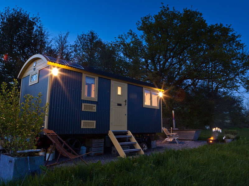 Somerset, EnglandPerched high up on the Mendip Hills overlooking Glastonbury Tor in the distance, located in our hayfield and offering lovely sweeping views.